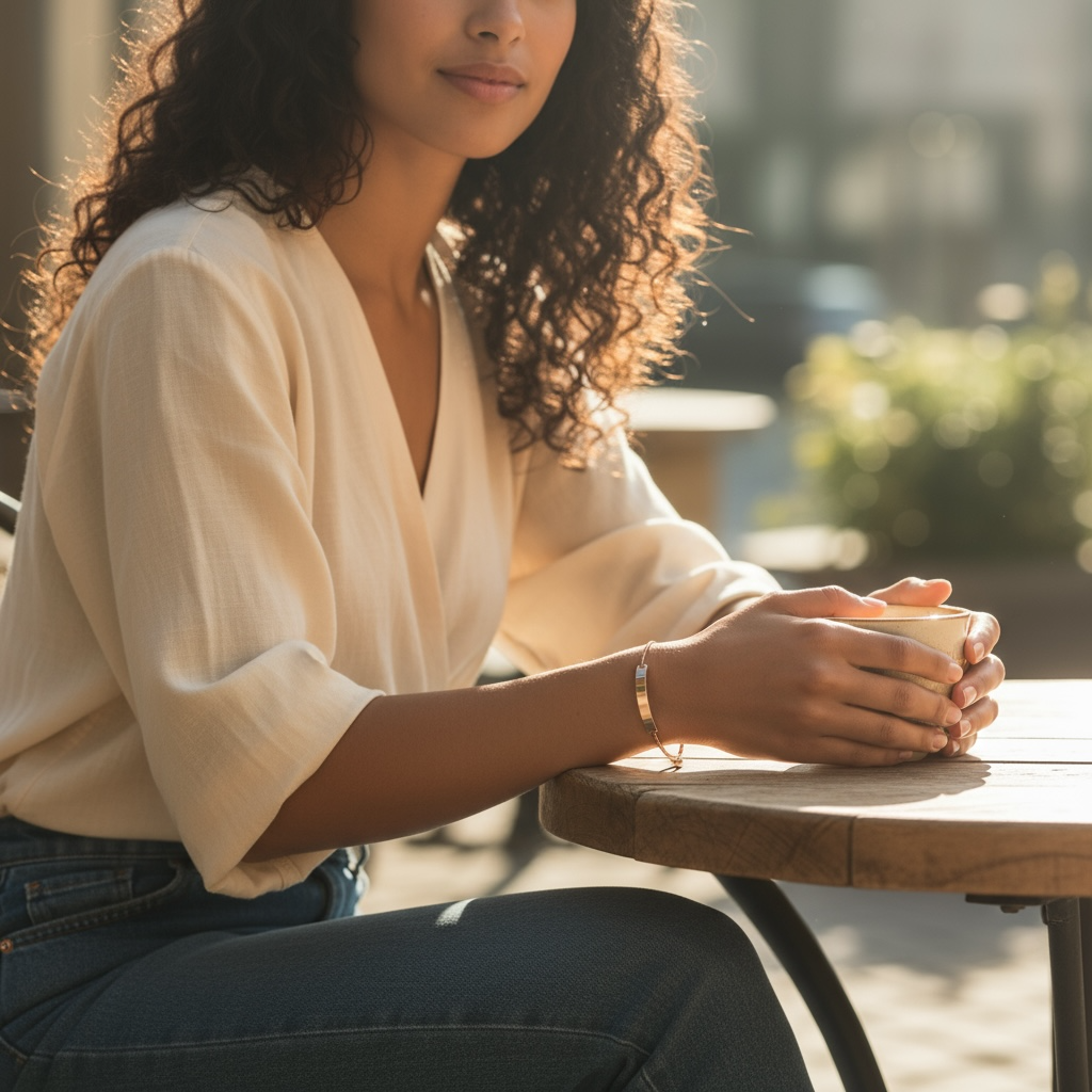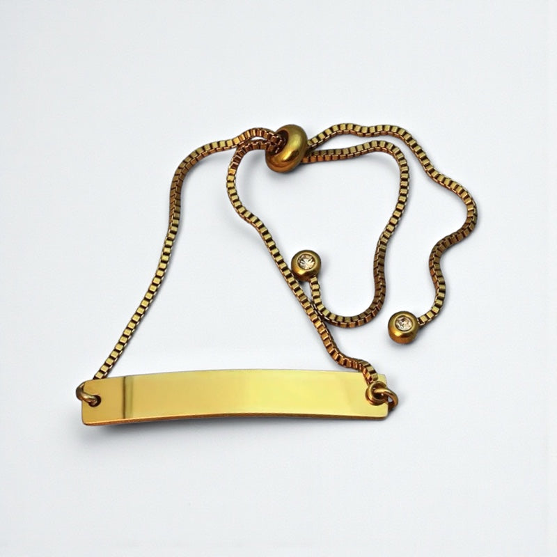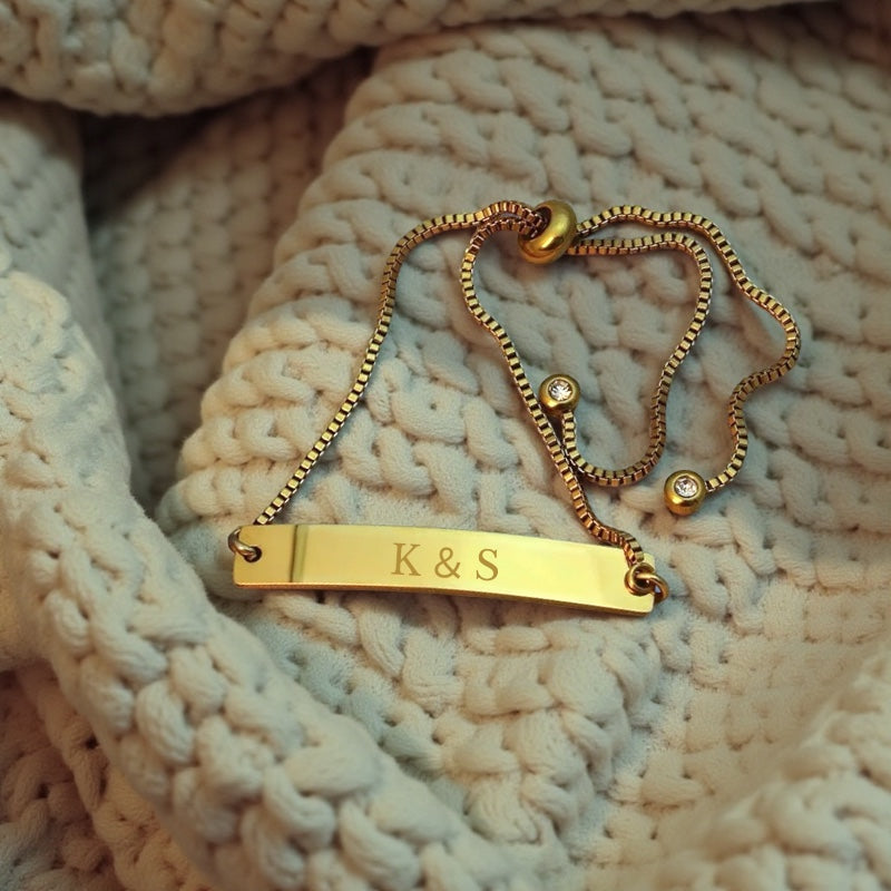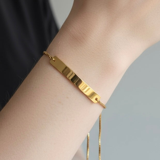 シンプルながらも洗練された印象を放つ、ミニマルデザインのバー付きブレスレット。